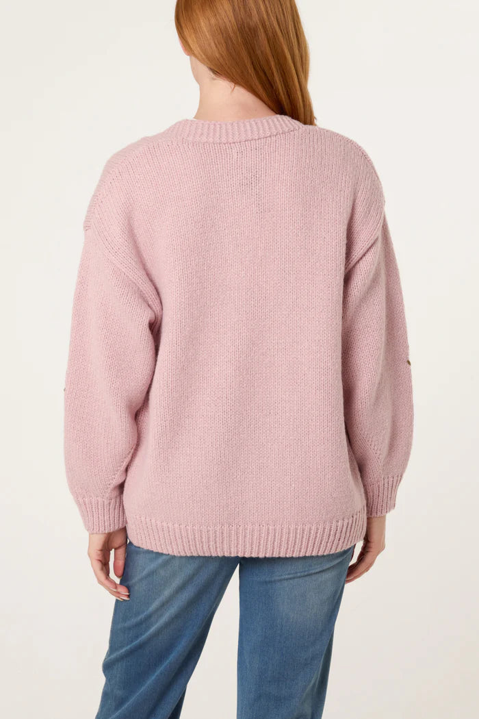 A beautifully crafted cardigan that brings together timeless style and delicate detail. This dusty pink knit features hand-finished daisy embroidery across the front, adding a touch of artistry to a classic wardrobe staple.