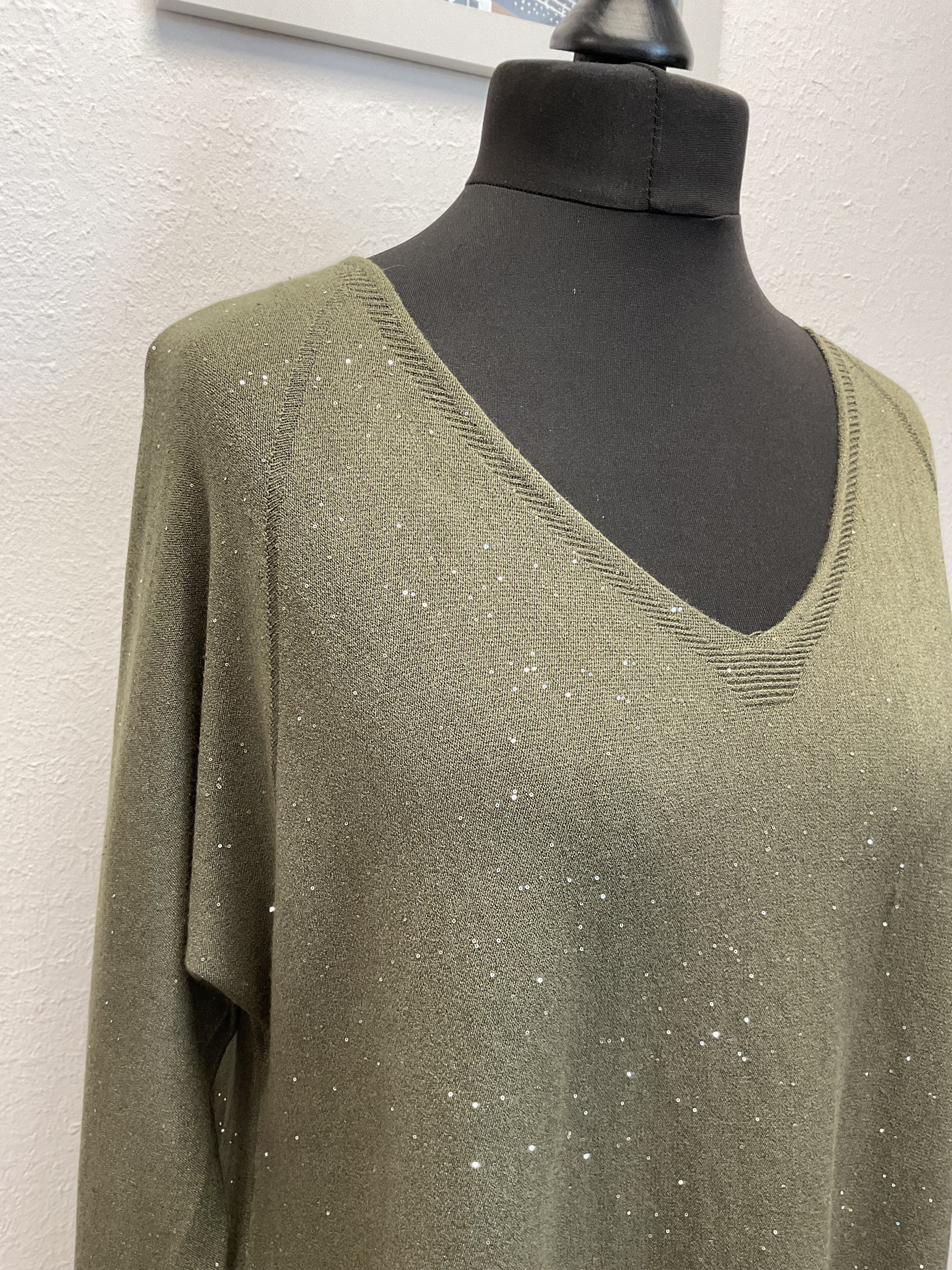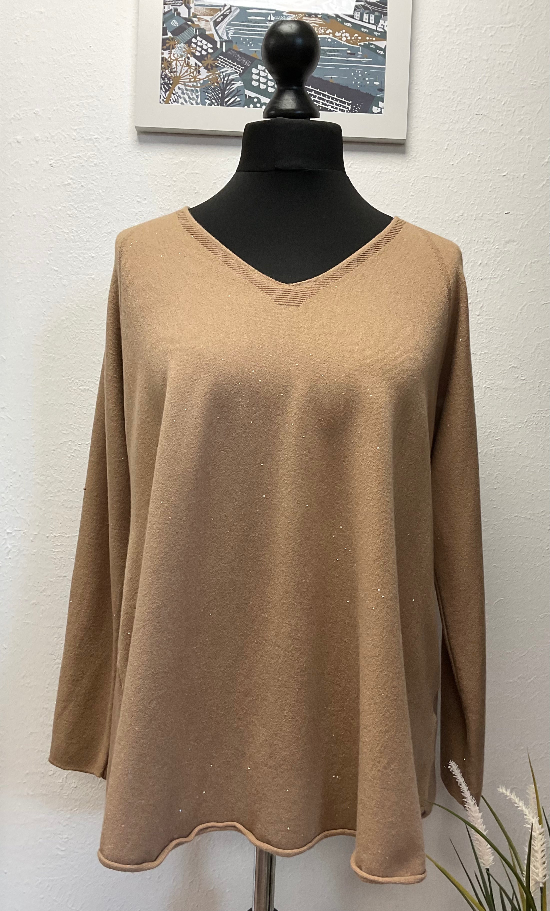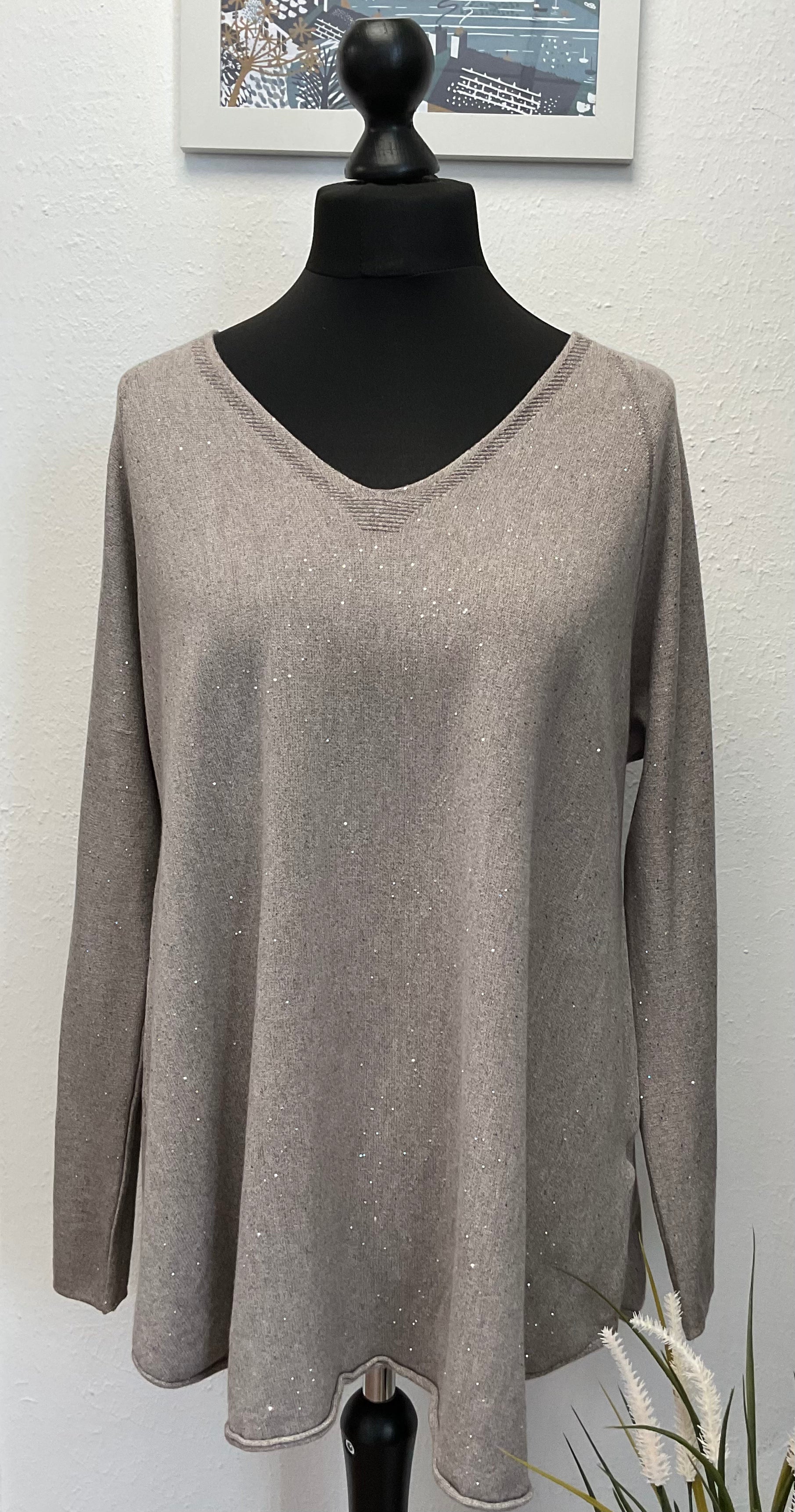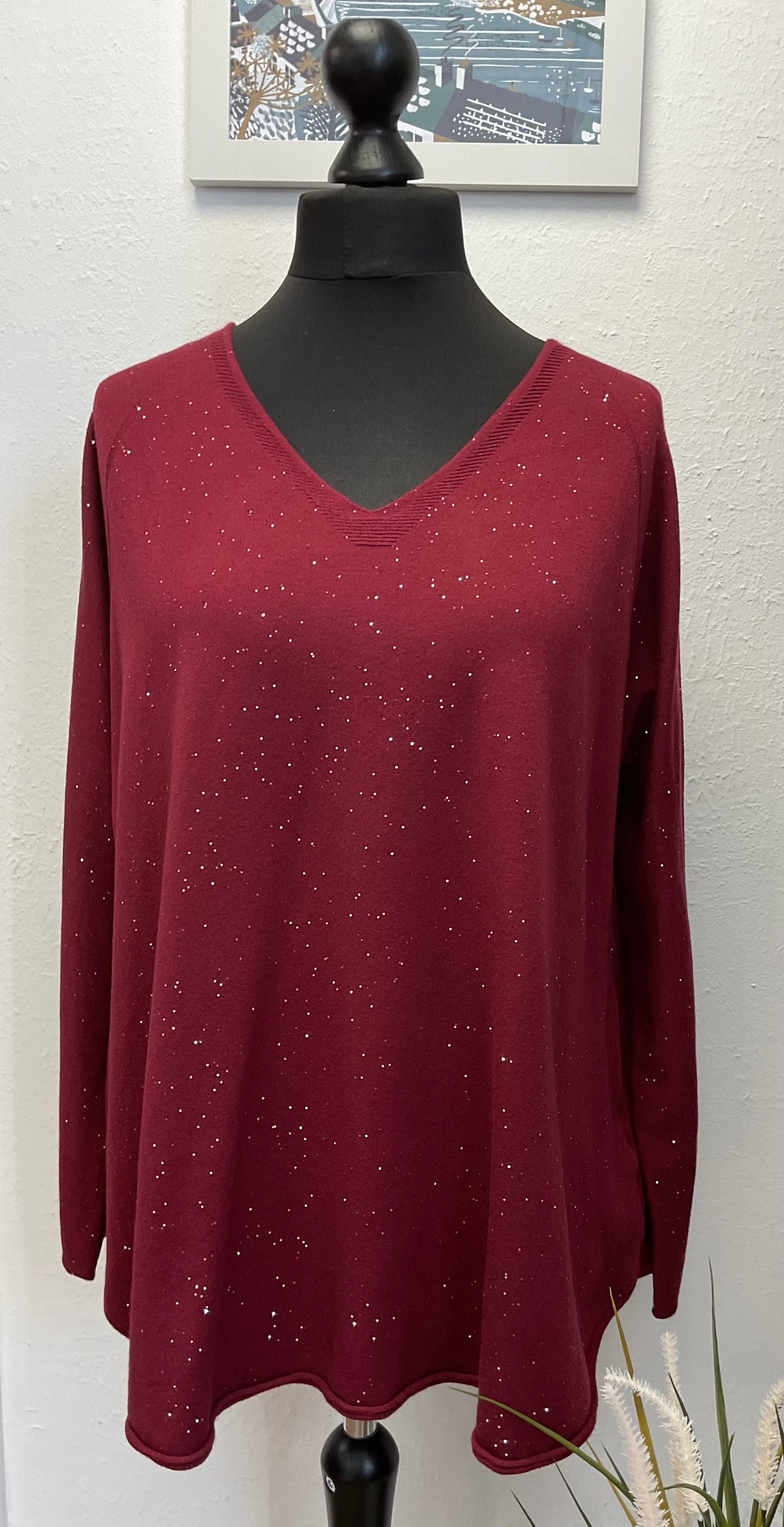 Add a touch of elegance to your wardrobe with this beautiful fine knit jumper featuring a perfect subtle hint of sparkle. The super soft fabric and flattering V-neck design make this a versatile piece that effortlessly transitions from day to night.