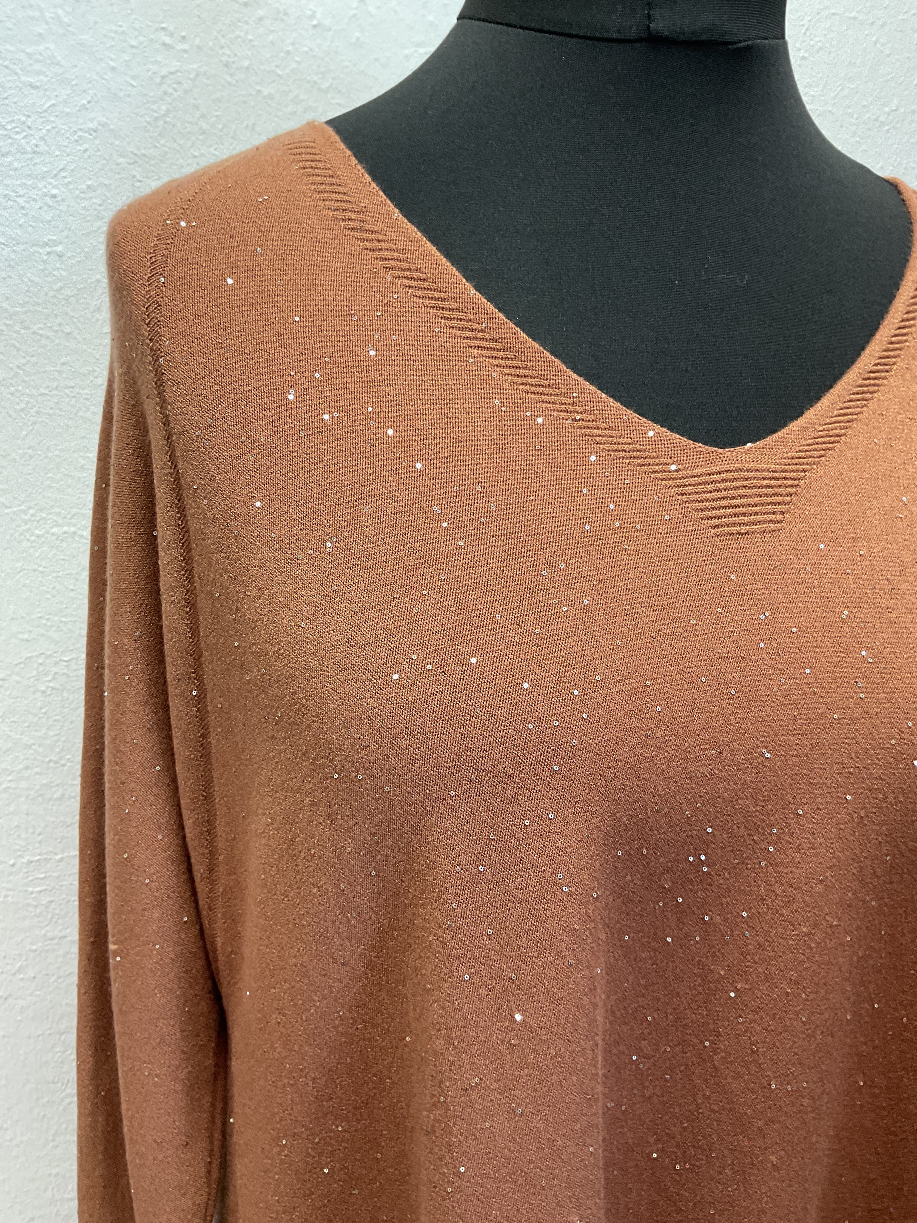 Fine Knit V Neck Sparkle Jumper One Size 8 - 18