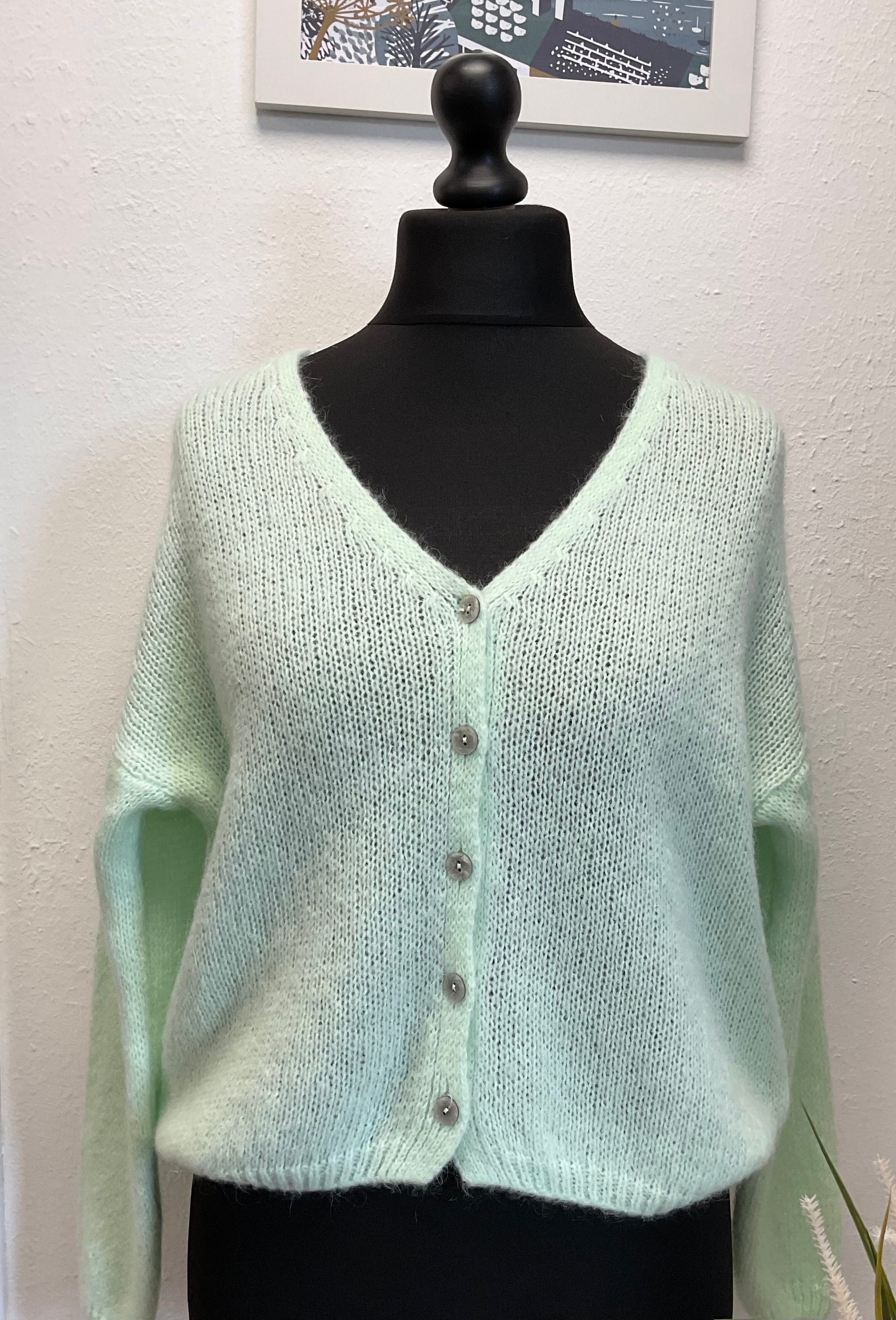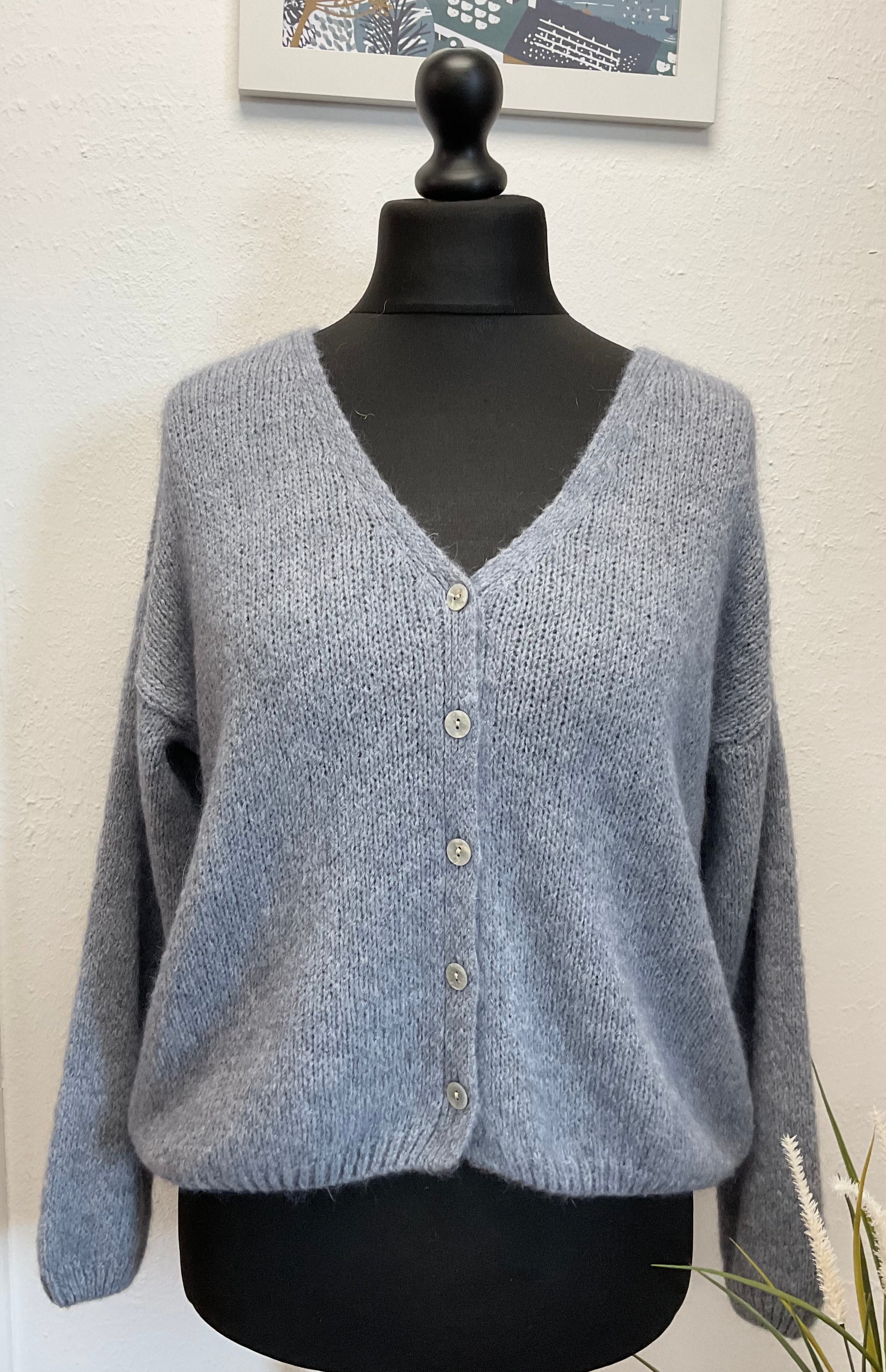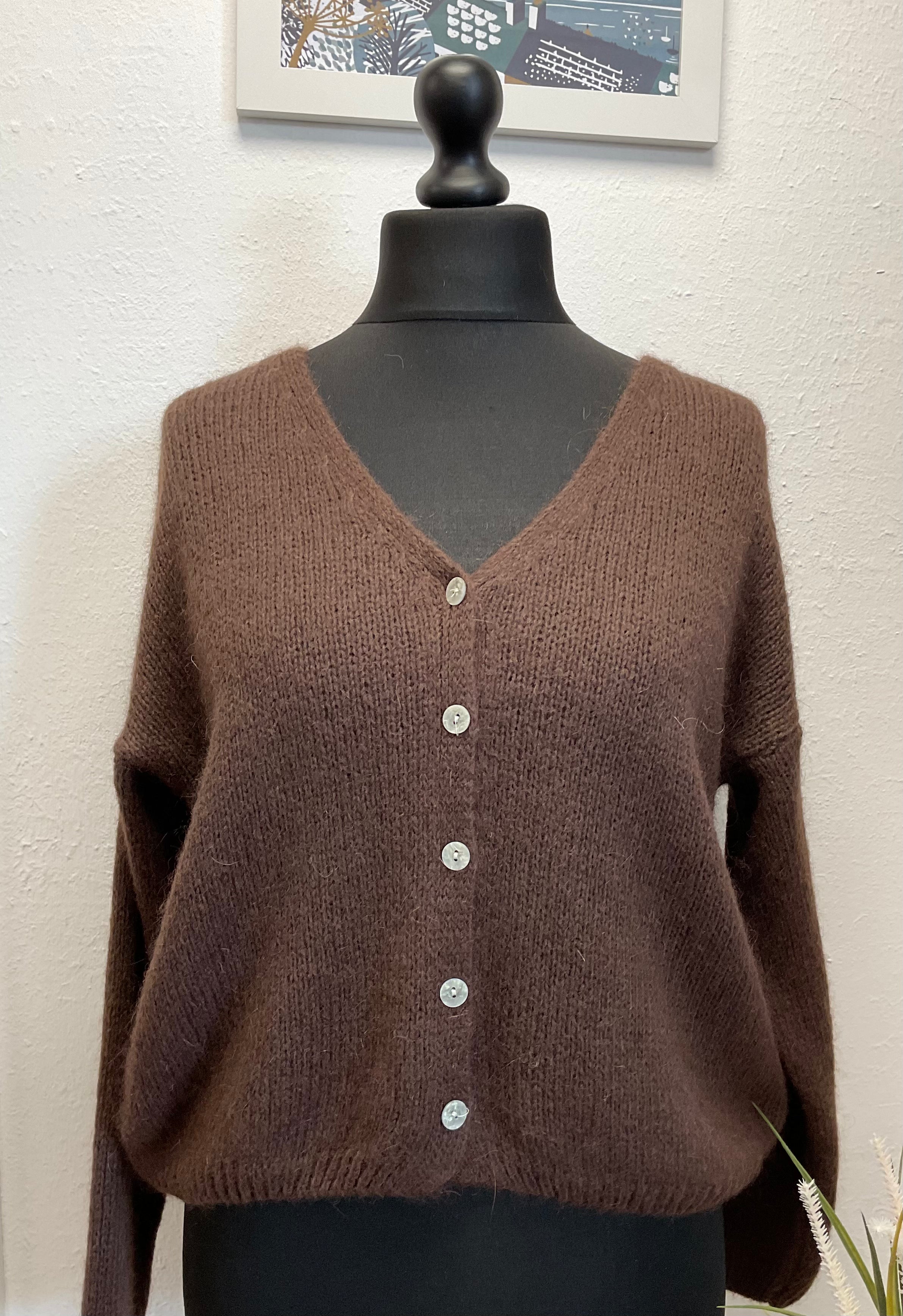 A neat little fluffy cardigan, our mohair v neck cardigan is made of the very best mohair. Spun in Italy the yarns are blended using various shades to create depth and texture; this makes these women’s cardigans extremely versatile and a very useful addition to your wardrobe to be worn over dresses, blouses & t-shirts.
