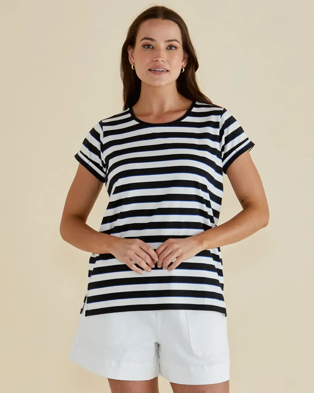 Elevate your everyday style with the Betty Basics Caia Crew Tee, a modern twist on the classic tee. Crafted from soft cotton jersey, this tee offers comfort and ease for daily wear. The scoop neckline, subtle side splits, and slight high-low hem add a touch of sophistication to this wardrobe staple. The relaxed fit makes it perfect for polished off-duty looks while providing all-day comfort. Pair it with your favorite bottoms for an effortlessly chic outfit.