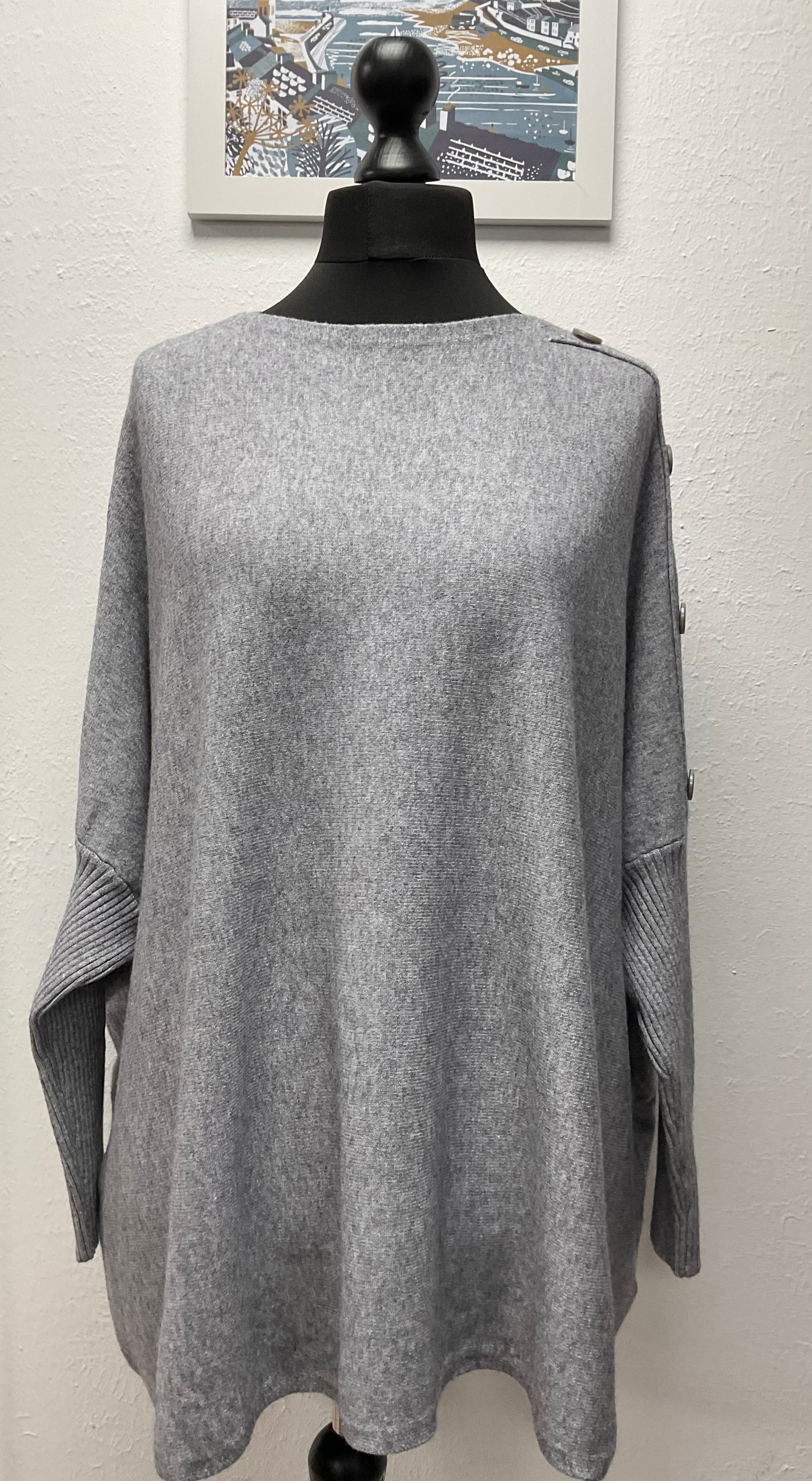 Oversized Button Sleeve Jumper One Size